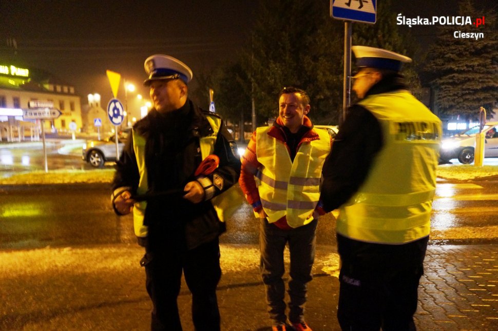 Adam Małysz już od wielu lat wspiera każde policyjne działania, które mają na celu poprawę bezpieczeństwa. Nie inaczej jest w tym roku. Mistrz z Wisły sam dostrzega ogromną potrzebę poprawienia bezpieczeństwa wśród pieszych użytkowników dróg. Sportowiec podczas akcji z cieszyńską drogówką zawsze wspomina jak wracając z zawodów, o mało co nie potrącił mężczyzny, który szedł poboczem i był zupełnie niewidoczny. Sam jako kierowca od tego czasu bardzo zwraca uwagę na pieszych, szczególnie tych, którzy są słabo widoczni na drodze. Cała ta sytuacja uświadomiła mu, że wystarczy sekunda i ktoś może stracić życie. Dlatego też niezmiennie od blisko dziesięciu lat wspiera akcję cieszyńskich policjantów, która ma na celu rozpropagowanie noszenia przez pieszych elementów odblaskowych. W związku z akcją Adam Małysz wspólnie z mundurowymi uczestniczył w patrolu, podczas którego razem wręczali kamizelki oraz elementy odblaskowe, rozmawiali z pieszymi, przekonywali do tego, że warto „świecić przykładem”. Użycie elementu odblaskowego powoduje, że pieszy jest widoczny dla innych uczestników ruchu z dużo większej odległości, co powoduje, że kierowca ma znacznie więcej czasu na reakcję i bezpieczne ominięcie takiego pieszego. Warte podkreślenia jest to, że ten niecodzienny patrol kontrolował pieszych po zmroku, w miejscach, gdzie widoczność spacerujących osób jest słaba.