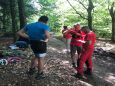 O godz. 12:40 ratownicy pełniący dyżur w Stacji Ratunkowej Leskowiec dostali zgłoszenie o nieprzytomnym rowerzyście leżącym na szlaku żółtym do Czartaka (okolice Wadowic od str. Jez. Mucharskiego).. Po przybyciu na miejsce ratownicy przejęli czynności ratunkowe, do tej pory uciski klatki piersiowej prowadził przygodny turysta.