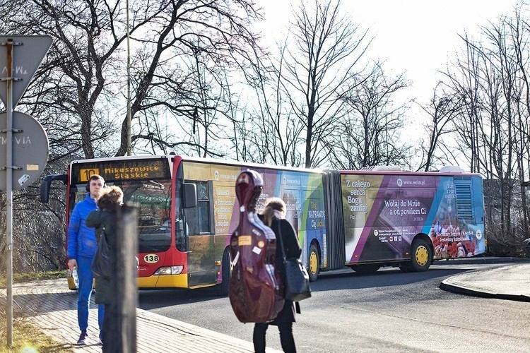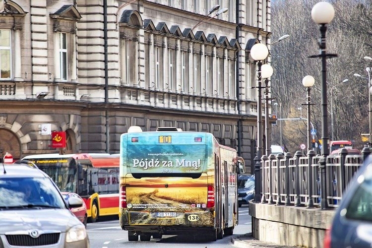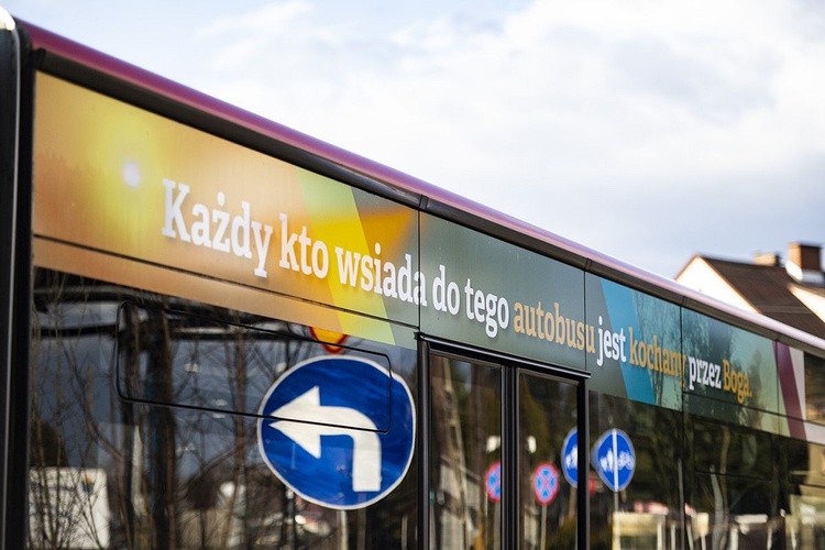 Na autobusie widnieje m.in. wizerunek Jezusa. Towarzyszą mu cytaty z Pisma Świętego umieszczone na tle kolorowych zdjęć: „Uwierz w Pana Jezusa, a zbawisz siebie i swój dom” (Dz 16, 31), „Odwagi! Ja jestem, nie bójcie się” (Mt 14, 27b), „Z całego serca Bogu zaufaj” (Prz 3, 5a), „Wołaj do Mnie, a odpowiem Ci” (Jr 33, 3a). W innym miejscu zmotoryzowani i przechodnie mogą przeczytać: „Bóg NAPRAWDĘ Cię kocha”, „I co z tym zrobisz? Kochamy Jezusa i Kościół. Jesteśmy katolikami”. Kierowcy jadący za przegubowcem MZK widzą natomiast przed sobą napis: „Pójdź za Mną” – Jezus (Mt 9, 9b).