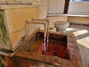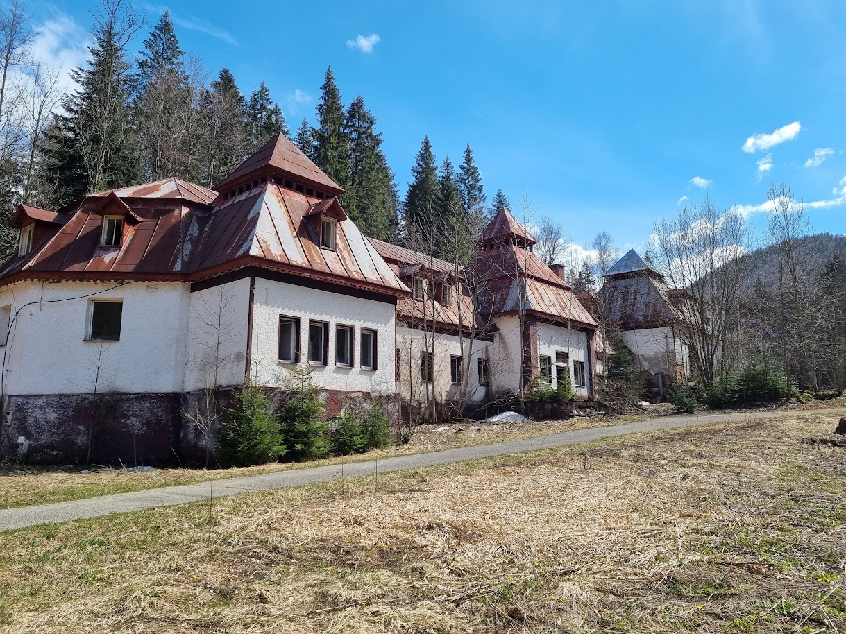 Korytnica to kilkanaście, może kilkadziesiąt zabudowań na małym obszarze. Według wikipedii to uzdrowisko, które go historia sięga XVI wieki. Niestety XXI wieku dotyczy koniec tej historii, póki co przynajmniej, gdyż kurort został zamknięty w 2003 roku... Według tej samej wikipedii w 2013 r. francuski przedsiębiorca chorwackiego pochodzenia w 2013 roku reaktywował część uzdrowiska, rekonstruując między innymi cztery ujęcia wody (prameny) i restaurację. W tym miejscu informacja wikipedii się kończy. Wiele wskazuje na to, że że inicjatywa francuza nie przetrwała pandemii. Znaleźć tam bowiem jeszcze można informacje o maseczkach i są one jaki jedne z ostatnich przejawów życia tam. Tutaj właśnie tkwi clou sprawy Korytnicy dnia dzisiejszego. Część czynna do 2013 rok jest już znacznie zdewastowana. Natomiast ta, działająca do COVID-u wygląda na dziś tak, jakby nagle i w jednym momencie wszyscy goście i pracownicy uciekli stamtąd porzuciwszy wszystkie czynności służbowe i przedmioty, łącznie ze sztućcami na stole, co widać zza okna.